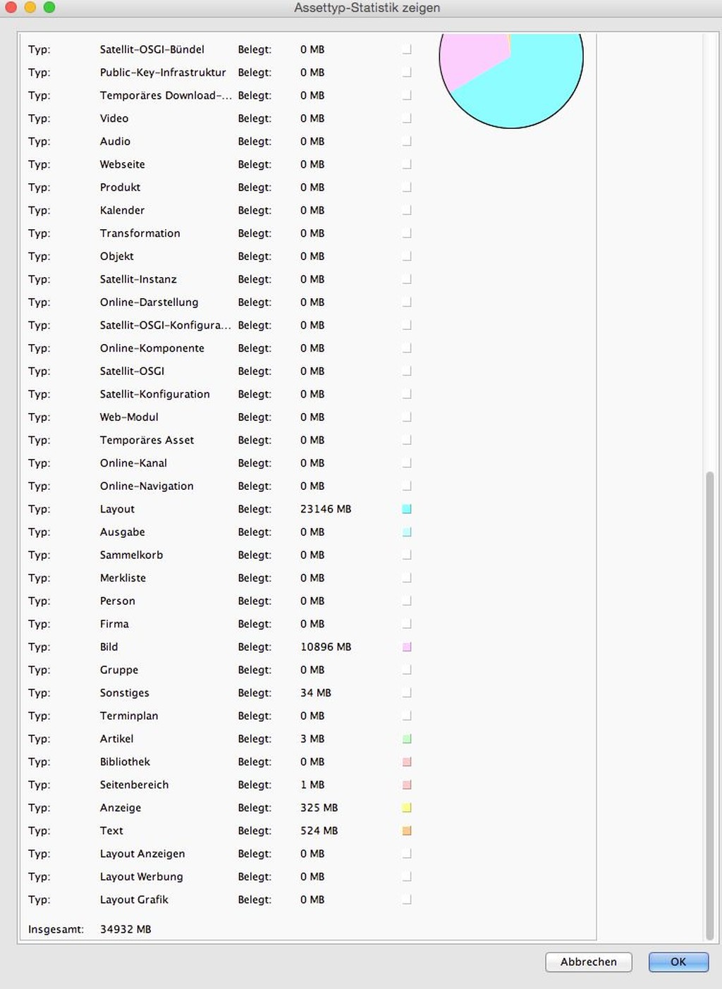 Once you press 'OK', censhare will calculate the size for different asset types on this particular domain and display the used sizes within the file system as a user friendly chart.