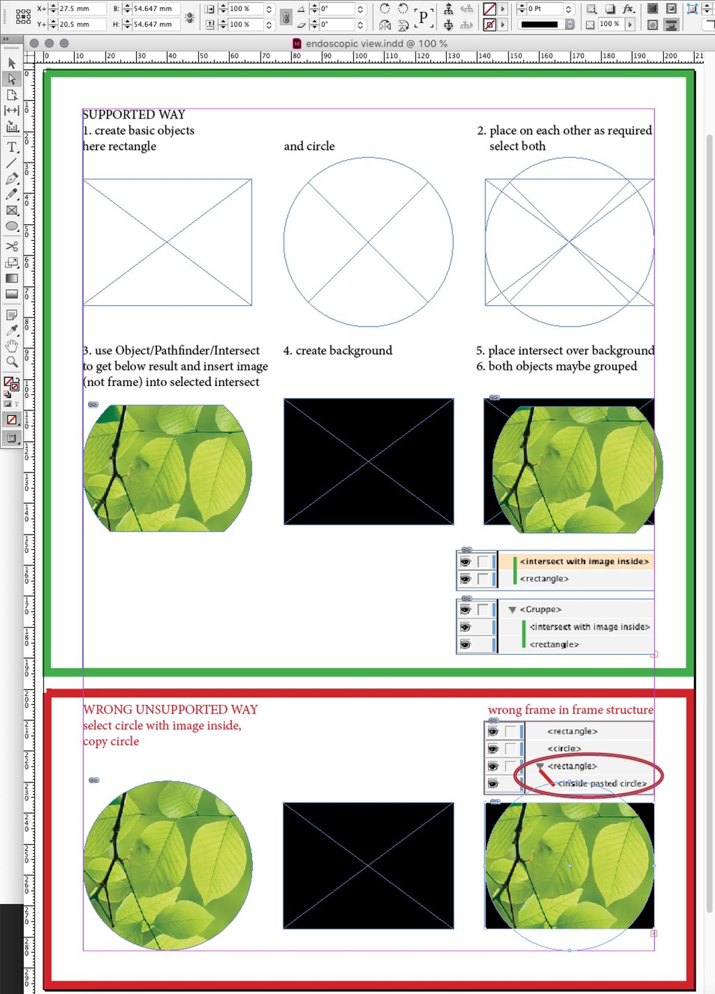 Below picture shows you the example 'frame in frame' state along with supported structure in indesign layer.
