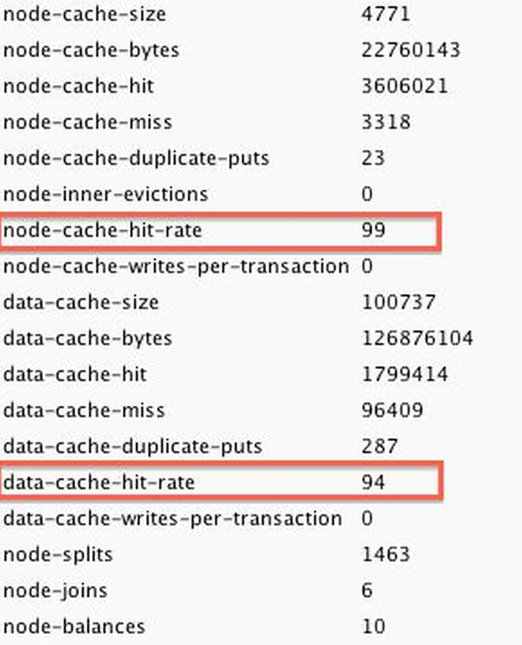The node- and data-cache-hit-rate are the most interesting values of the statistics.